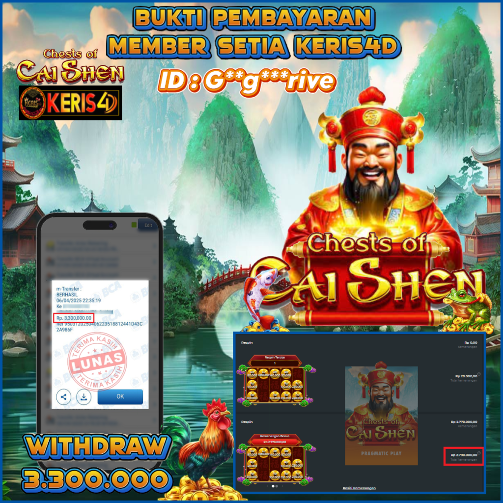 JACKPOT SLOT GACOR MAIN MAIN CHESTS OF CAI SHEN 06 APRIL 2025, Kemenangan Slot, Bukti Kemenangan Slot, Kemenangan Slot Pragmatic Play, Menang Slot online, Slot Gacor, Situs Aman Terpercaya, WD Berapapun Pasti DI Bayar Tuntas, Maxwin Slot Online.