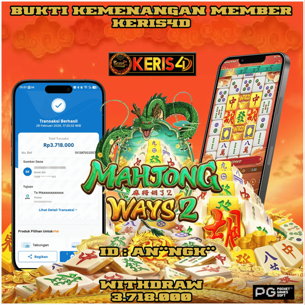 KERIS4D dikenal sebagai situs terpercaya yang selalu menghadirkan pengalaman bermain slot online yang aman, fair, dan berlisensi resmi. Di sini, kami tidak hanya sekadar memberikan janji, tapi bukti nyata berupa slip kemenangan yang dapat Anda lihat secara langsung.