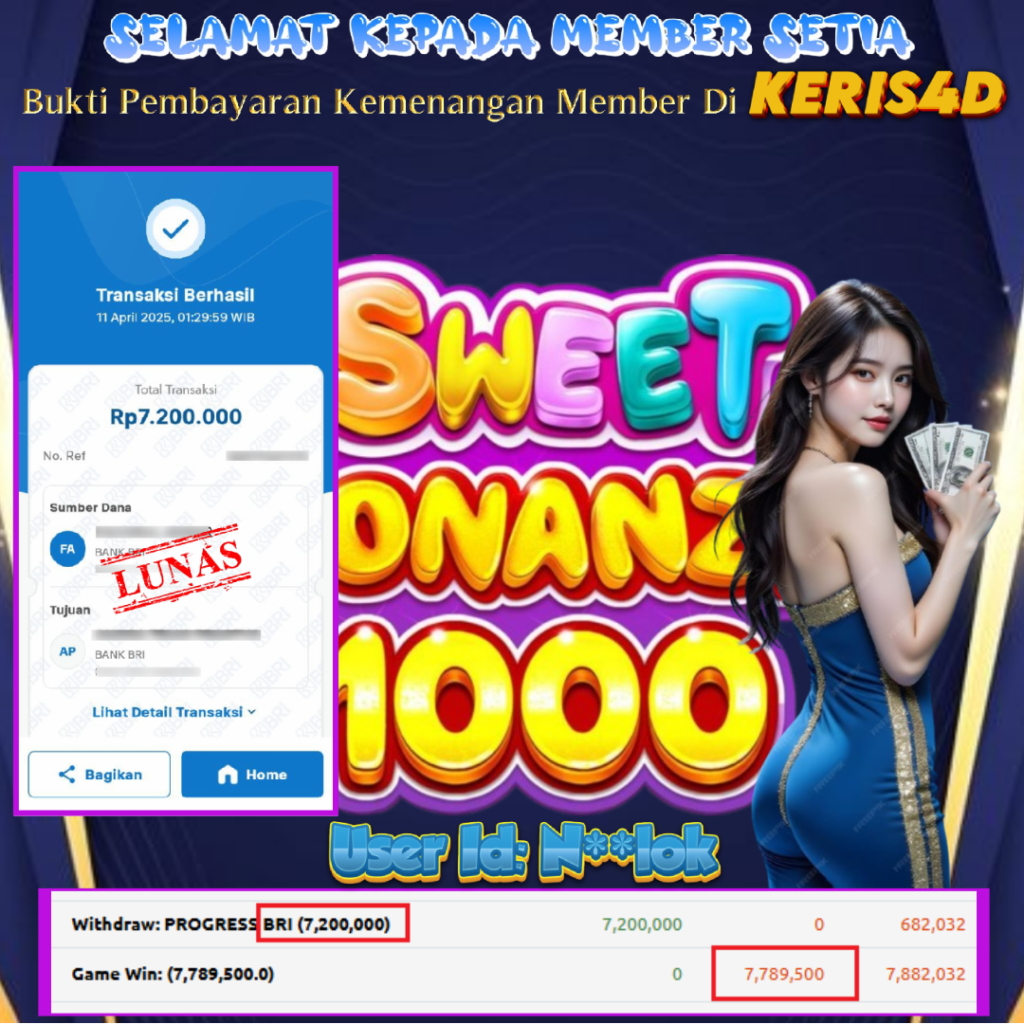 KERIS4D dikenal sebagai situs terpercaya yang selalu menghadirkan pengalaman bermain slot online yang aman, fair, dan berlisensi resmi. Di sini, kami tidak hanya sekadar memberikan janji, tapi bukti nyata berupa slip kemenangan yang dapat Anda lihat secara langsung.